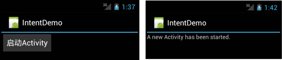 - 导入“ IntentDemo ” 的安卓工程, 建立如下图所示的界面,包含两个 Activity ,分别是IntentDemoActivity 和NewActivity,程序默认启动的 Activity 是IntentDemo,在用户点击“启动 Activity”按钮后,程序启动的 Activity 是 NewActivity,请分别补充程序:
