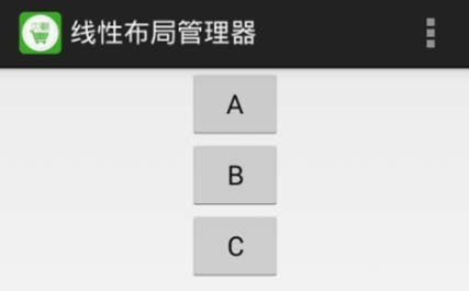 - 创建工程,命名为 LinearLayoutDemo,布局界面如图,A、B、C 三个按钮呈垂直线性排列,请写出相关布局文件代码。
